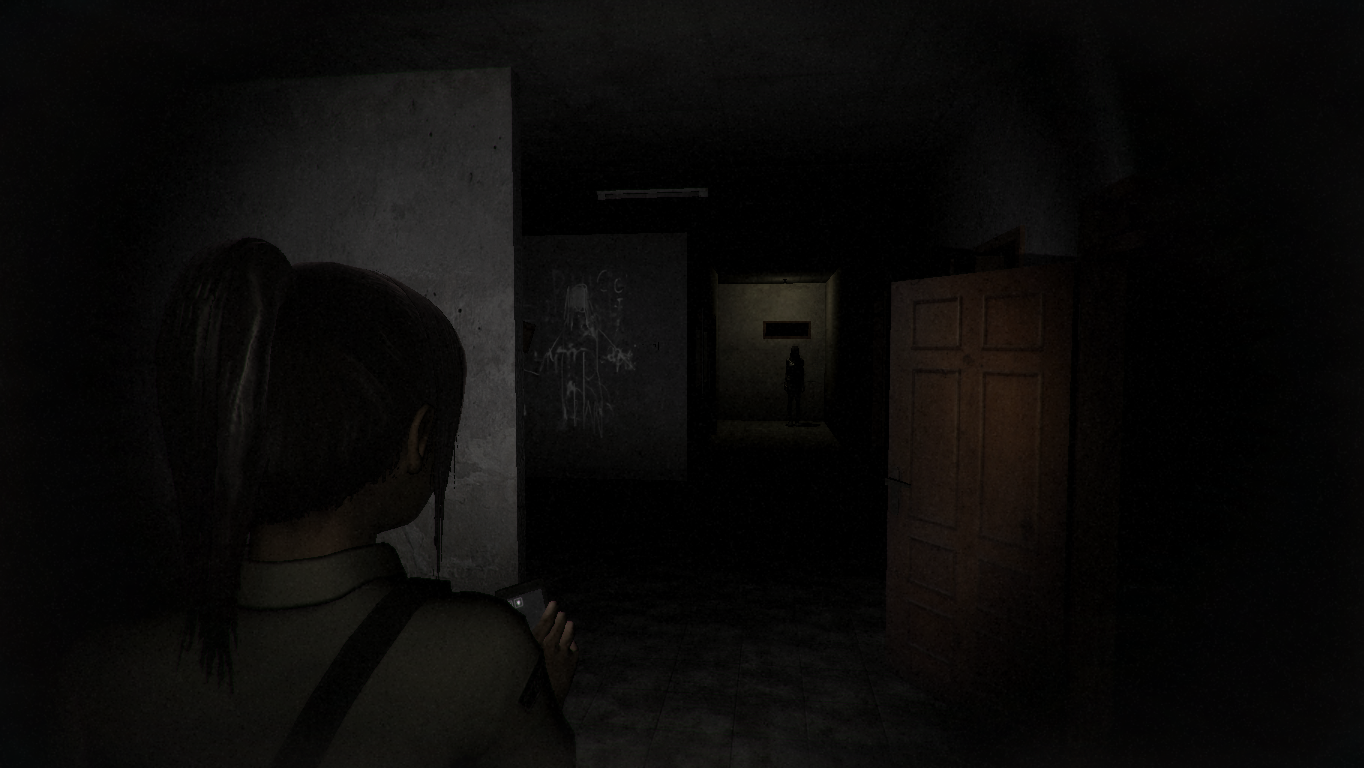 Like Fatal Frame, ghosts in DreadOut really don’t like being photographed, so much so that they just leave this plane of existence after a certain amount of pictures have been taken. In theory, the gameplay is as simple as switching to the first person camera mode, pointing at a ghost and pressing the shutter button, but of course there are various complications. Some ghosts are invisible to the naked eye, which means Linda can only detect them by looking through her phone. Others are wicked fast and can only be captured when properly anticipating their moves, or require special treatment, like a ghost that can only be hurt by photographing the scar on its back. Later in the game, there are several interesting puzzles involving photographing angles, mirrors and invisible passages. It’s all digital here, so unlike Fatal Frame, there is no resource management in the form of films. The phone has a battery display which gradually gets lower, but it’s completely dictated by story progress.