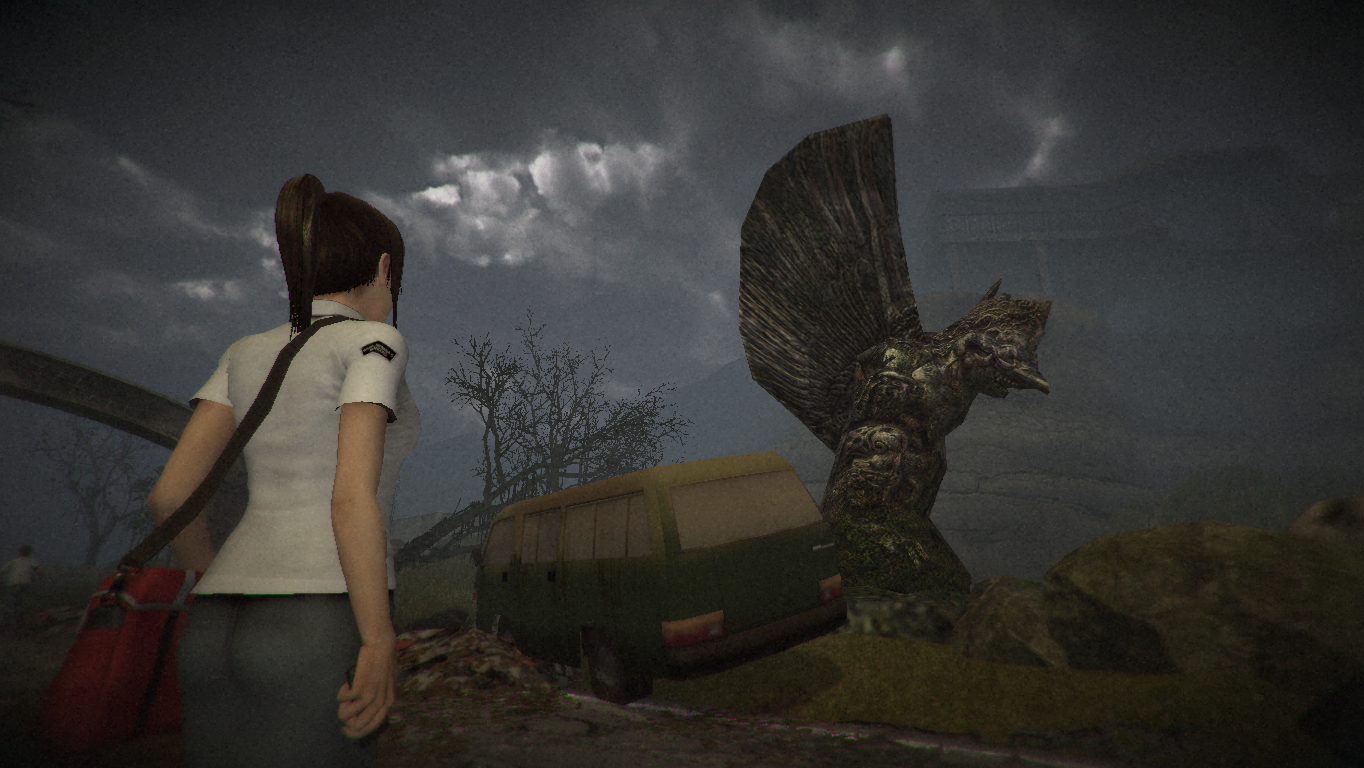 What is actually going on never becomes clear the way it does in Fatal Frame, which at least went so far as to eliminate any doubt that the ancient camera was somehow imbued with magical powers. Here it’s not even certain what makes the ghosts so allergic to being photographed. The human characters are similarly underdeveloped. The only exception is Linda’s BFF Ira, who is shown responding to the spiritual energies in the village in a certain way, and who has some great scenes with the heroine, even though (or maybe especially because) those are rendered a bit awkward by Linda being a silent protagonist.