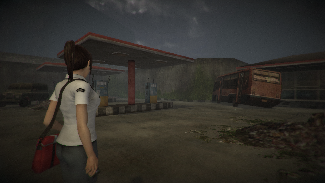 The architecture in DreadOut looks very turn-of-the-century, not in style but because of the technical implementation. Buildings have sharp edges, objects are kept simple and many areas seem a bit empty, even considering that they’re all abandoned. Plant life looks a bit more convincing, and some of the outdoor areas are even fairly pretty. Characters are well-modeled, though also in a PlayStation 2 era, plastic doll-ish kind of way. When they animate, the skin on their joints tends to distort in weird ways (it can even be noticed on the official promotional poster above), which kind of makes the game even more creepy.