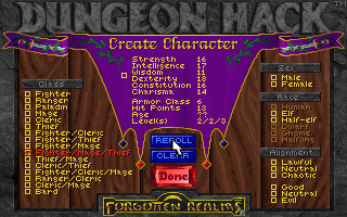 With the history of roguelikes firmly rooted to table top RPGs, it was only a matter of time before the formula was applied to the Dungeons & Dragons license. Enter Strategic Simulations, Inc. (SSI), a company well known for their computer role-playing games during the 1980s and 1990s, as well as their use of the Dungeons & Dragons license. SSI, along with DreamForge Intertainment, took the roguelike mechanics and D&D name, added their own spin to it, and the end result came in 1993 with the release of Dungeon Hack.
