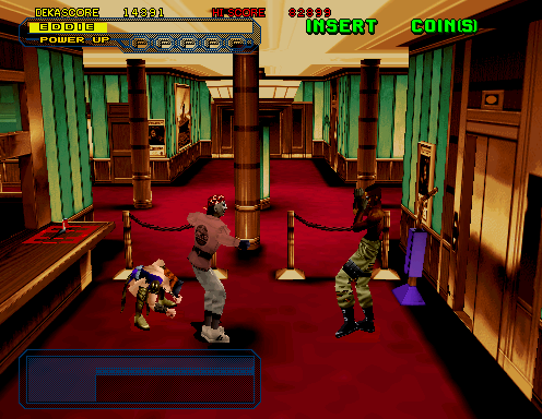 Even though the second game in this series lacks an official movie tie-in, Dynamite Deka 2 / Dynamite Cop is basically “Die Hard on a Boat”. In turn this was technically the plot of Speed 2: Cruise Control, a movie best forgotten, and a concept that this silly little video game executes to far better effect.