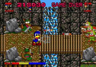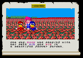 The only port handled by Sega themselves is the Master System version, which was primarily released in PAL territories and Brazil. Obviously a scaled down 8-bit version of a 16-bit game isn’t going to look as pretty, and it especially hurts a game whose appeal relies heavily on its visuals. Still, it looks decent enough for a Master System game and plays a bit better than any of the computer ports. Unfortunately it’s missing the jungle stage. The plot has also been altered so Bin is Lucy’s human boyfriend, who has been transformed into a duck. Pin is not present since the two-player mode is gone.