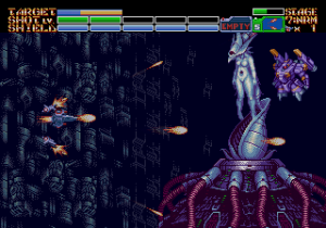 The shoot-em-up basics, from the style to the feel, are all quintessentially Genesis, though it benefits from cleverly modern design. Unlike so many other contemporary shoot-em-ups, Earthion features a regenerating shield system, an aspect that feels refreshingly modern. At the outset, it can only take two hits before leaving you vulnerable to destruction, but if you manage to avoid damage for several seconds, it’ll quickly regenerate back to full strength. Enemy fire is denser than most other 16-bit shoot-em-ups to counterbalance your high defense, which requires both quick reflexes to dodge the bullets and strong offense to defeat enemies before they can overwhelm you. It’s also a testament to the programmer that the action doesn’t flicker and rarely slows down, alleviating a regular problem from the era