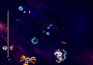 There are two segments in this stage. In the first, you run through tubes, and need to avoid the gigantic muscular cats that roam the hallways, who are invincibile and will pummel you if you get too close. There are also tiny little cats that pack a surprisingly wallop – to beat these, you need to locate the nearest gigantic hamster (??), free it from its cage, and use it to chomp through these miniature bullies. In the other segment, you climb into a bathosphere and need to navigate it through some narrow corridors. Not only are you running low on air, requiring that you position the globe at refill points, but if you hit too many walls, you’ll crack the glass and die. These parts are infuriating. The SNES version has an extra background layer that shimmers slightly. The Special Edition has an extra hidden Andy Asteroids level here.