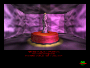 Osamu Sato. This name happens to be mentioned from time to time by gaming enthusiasts in the depths of the Internet, where this strange man’s creative impulses seem to have spawned kind of a cult following. There isn’t much that is known about him, though. He was born on April 14, 1960 and graduated from the Kyoto Institute of Technology. He first worked for an agency called Moss Advertising, but left around 1988 to start a freelance career with the “Osamu Sato Design Office” as a multimedia artist, dabbling in CG illustration, video art and electronic music. His first independant work is a psychedelic typographical collection called Alphabetical Orgasm which was exhibited in Tokyo in 1991. From an artistic standpoint, he mentions Russian avant-garde, with elemenets of futurism and bauhaus as his greatest influences. But also, and above all, he had a boundless love for the computer as a creative tool. Sadly, there exists no real interview with Sato, so that’s probably the most detailed info available. Where it starts to get really interesting is in the year of 1994, when the studio he funded – renamed to OutSide Directors Company – developed his very first video game, an oddity called Tong-Nou.