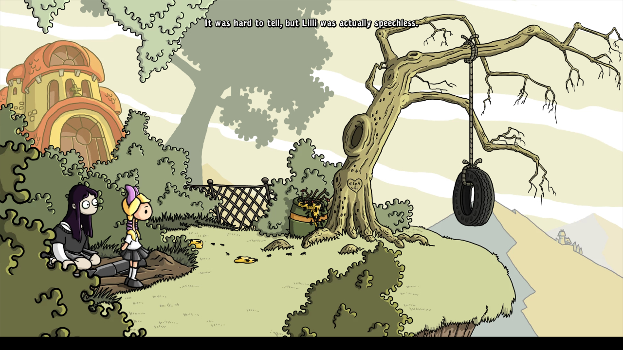 The hypno Harveys are a really inspired twist for the character, turning the comical id into patronizing super egos of various themes and gimmicks, each representing different rules given to children by adults. The key to solving these puzzles is often ironic, creating situations where those rules have to be broken for Lili’s well-being, or logically deconstructing them. The highlight of the latter is definitely the lying puzzle, where you have to mathematically prove that lying can be good. The hypocrisy coming from the Harveys never stops being funny either, especially whenever their ignorance comes into focus, like suggesting a safer place to be than walking the street is a Rolf Harris concert. The most is made of the puzzle set up for putting Lili in all sorts of messed up, darkly comedic situations too, though never to the heights of a Goodbye Deponia or the like.