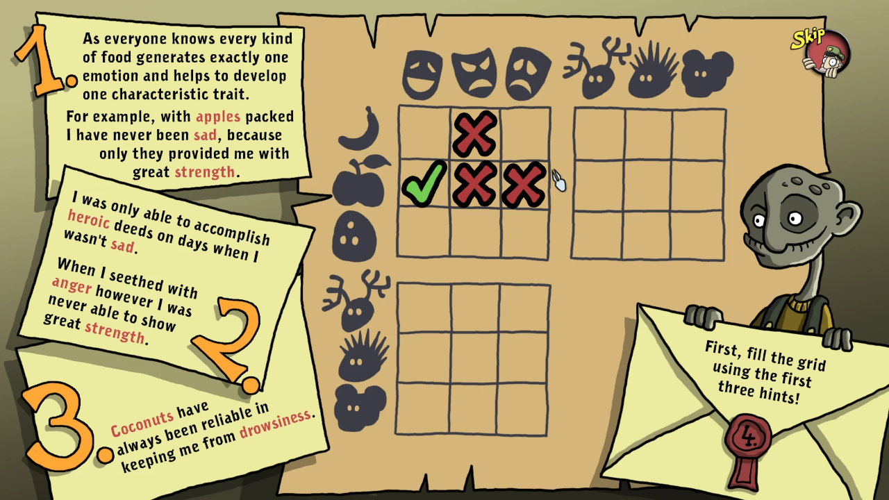 One oddity is that the game also uses some traditional logic puzzles instead of focusing entirely on traditional point and click item and dialog puzzles. They’re solid puzzles, often laid out like a children’s puzzle book, complete with a hint system, and feel more in step with what the European adventure game scene was becoming at the time. However, they’re a tad more time consuming than what most Daedalic fans would expect, so they added an option to just skip these puzzles entirely, giving achievements for both solving them and skipping all of them. It’s yet another layer to the game’s premise and its habit of playing with it for meta humor and surreal moments.