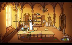 The remake version redraws everything, giving widescreen assets and moody lighting and shadows for the backgrounds and characters. The designs of the characters remain mostly faithful, but the details are touched up in the sketchier spots. The one significant change is that Edna’s original angry looking default pose has been switched with a more oblivious expression that better fits her actual character. Music does its job, and we have the usual iffy but expressive English dub we expect from Daedalic, though with no vocal theme from Michaelis this go around.