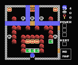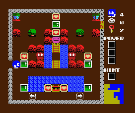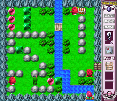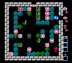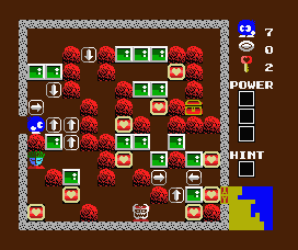 Even still, it's cool to have some say over which order you solve the puzzles in. It's also quite a bit more challenging than the predecessor, and assumes right off the bat that you're already familiar with how the Eggerland series works. Making it even more challenging, there are also some very esoteric puzzle solutions that are nigh-impossible to figure out without a FAQ, due to having requirements that normally don't apply to the rest of the game. It's not impossible though, as the game gives you a vague hint on the right side of the screen. You can also find four "gods" during the course of the game who will grant you the ability to use their powers (infinite ammo, super speed, etc.) in the final few puzzles. The enemies Leepers, Rockies, and Don Medusas also make their first appearance in Eggerland 2.