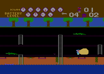 Bizarrely, Electrician was one of a handful of American computer games that was licensed by Japanese publisher Kemco and ported to the Famicom System. This version makes a number of changes – Kemco’s game has larger, cartoonier graphics, and names the hero Richard Light. The manual details a story where an earthquake has knocked out the power of the entire United States, and it’s up to his genius electrician skills to save the day. His death animations, where he either shatters or melts, are rather amusing, if weirdly gory. Some of the enemies are changed, too, such as the alligators from the Atari version being replaced with turtles. Maybe they didn’t think Japanese gamers would get the joke about sewer gators? Or maybe they were making a more overt Mario Bros. reference? The walking televisions were also replaced with thieves, as perhaps they felt that was just a little too surreal.