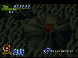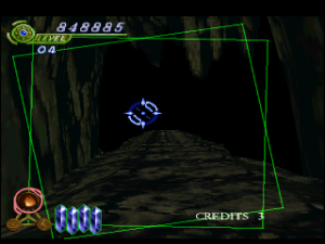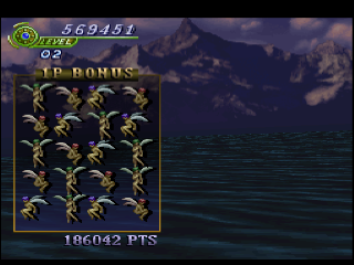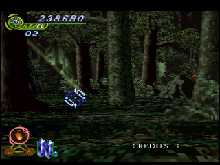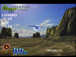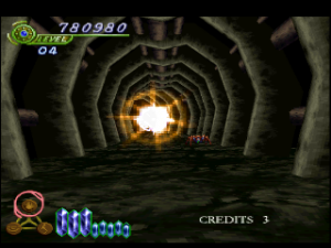 Working Designs made a few changes upon localization, though less so than normal. The Japanese release includes a radio drama that told the game’s backstory; rather than dubbing, they instead added a summary of it in the manual, and replaced it with voiced outtakes from the other cutscenes, a staple of their PS1 releases. The game also ends after a few stages in Easy mode, requiring playing at Normal or higher to see the whole game. However, the difficulty levels have been substantially rebalanced, making the English version much, much more difficult. Both versions support Konami’s barely used light gun as well as Namco’s GunCon accessory.