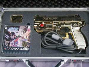At the 1998 E3, Working Designs gave out an extremely limited number (about 40) of an “Assassin’s Case” special edition, which included a large case, the game, a golden-platered GunCon, and a golden colored memory card. It’s a huge collectors item and is valued at several thousand dollars. The US release of the game alone is pretty pricey on its own, but nowhere near this amount, of course.