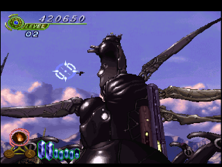 Where it deviates is the typical pool of blockbuster action movies these games often drew inspiration from. Where its peers looked to those movies to create tense, action-packed scenarios for the player to navigate, Elemental Gearbolt’s mood is more somber and contemplative, like something out of a fantasy novel. Or at least that’s the intention. It presents itself as more sophisticated, especially due to the fact that the English version was published by Working Designs, a company more well known for its RPGs than its shoot-em-ups. At least, it suggested something deeper than an arcade game.