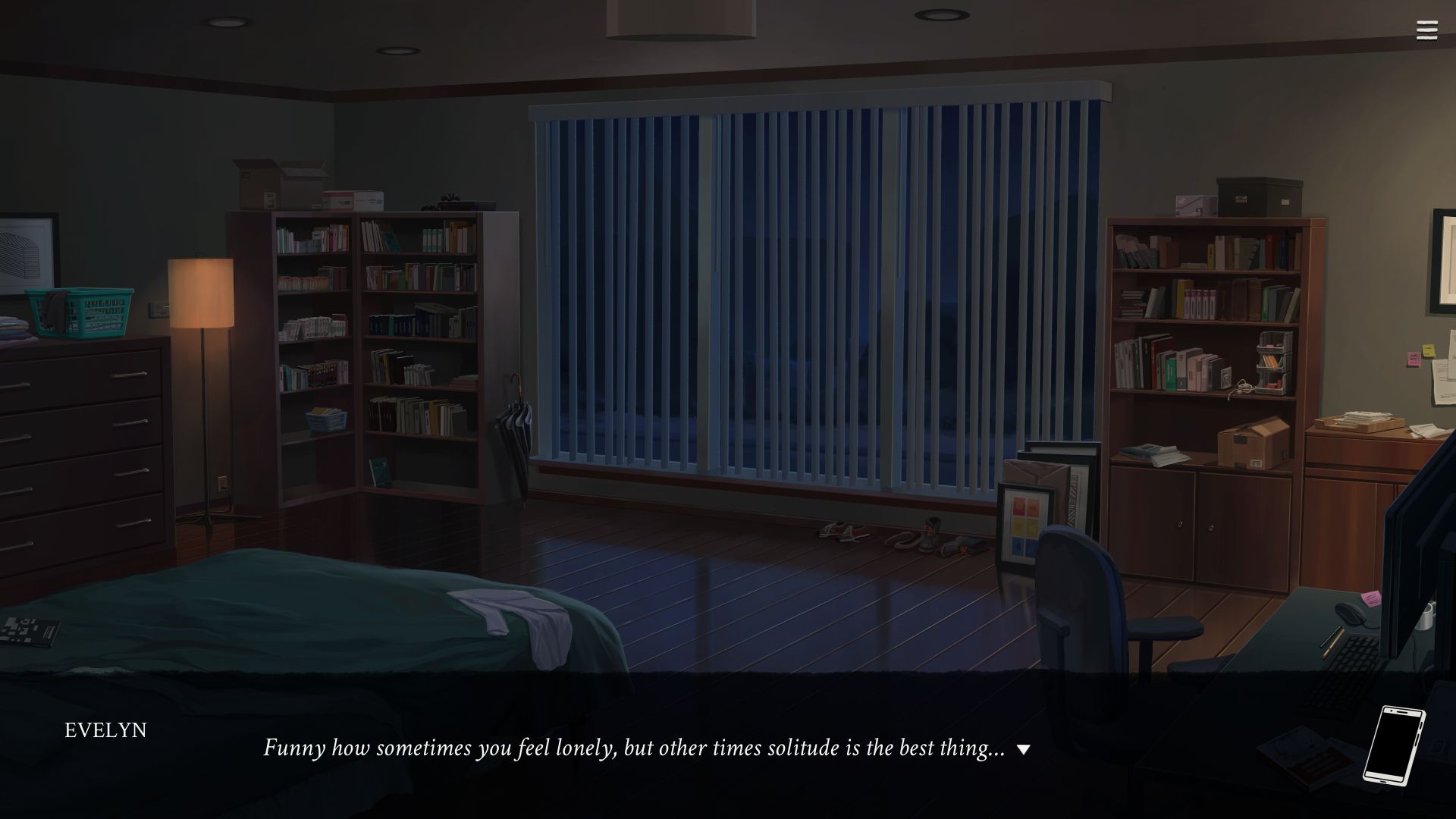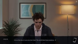 This atmosphere isn’t meant to bring the player down, however. Eliza’s thematic and causal core is suffering, exposing environments and cultures that consume those included in them. Yet, if anything, it’s a hopeful game: its gloomy aura is there to make the rare moments where you connect with the other characters more meaningful. For instance, at one point you may spend an afternoon baking cookies with a friend – while trading life stories and useful tips on how to deal with a broken family. And, near the end of the game, you can also break the wall between proxy and client, in a final act of rebellion as Evelyn grows ready to move on with her life.