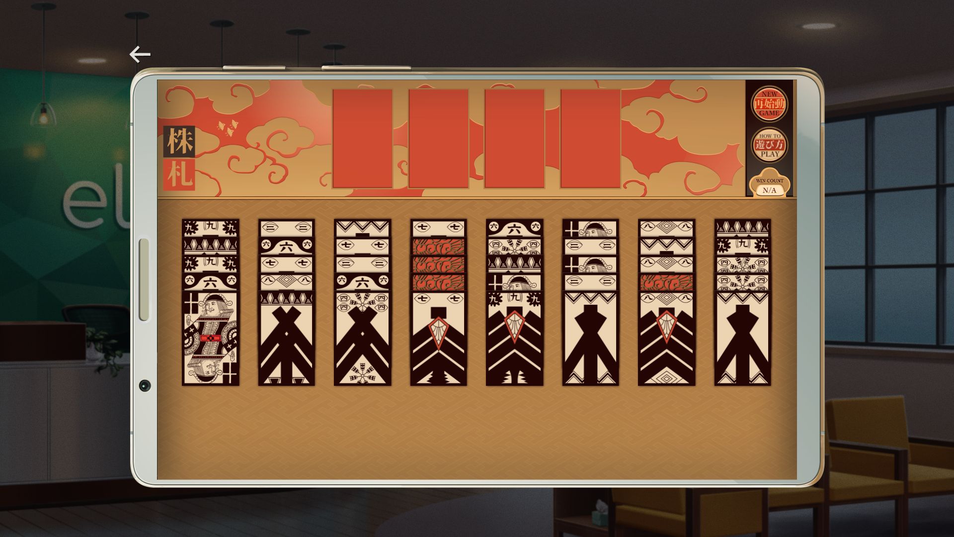 Gameplay-wise, it’s where Eliza could use an expansion too, since it’s very linear and your choices are mostly cosmetic – excepting the multiple endings, which nonetheless are a free pick in a choose-your-destiny menu that isn’t gated by the player’s previous input. Still, Eliza’s linearity is alleviated by a variety of side-content represented by a smartphone you can access. On it, you can read emails and articles fleshing out the story’s setting, view some pixel art of relaxing Japanese city settings and play Kabufuda Solitaire – a beautiful yet brutal take on solitaire, with multiple difficulty levels reducing available free cells.