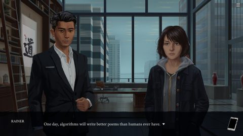 In general, Eliza is very well-written, with characters flawed and strong in equal measure, and a story that doesn’t deliver itself to you chewed and digested. Its only flaw is that Evelyn seems to suffer from Commander Shepard syndrome, as everyone praises her programming skills and inventiveness, yet nothing in the game shows that in action. The game is also very short – in the afternoon it takes to finish it, you’ll likely be left wanting more. Especially since it discusses a lot of interesting topics that games rarely explore, such as socioeconomic alienation, the predatory nature of work culture, big data’s growing role in society, and much more.