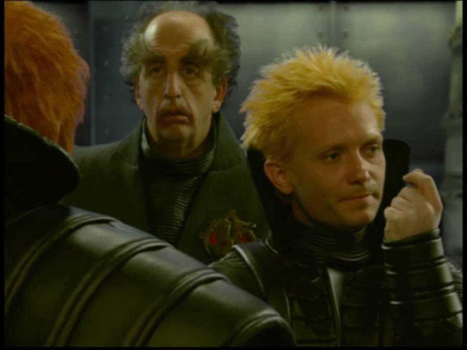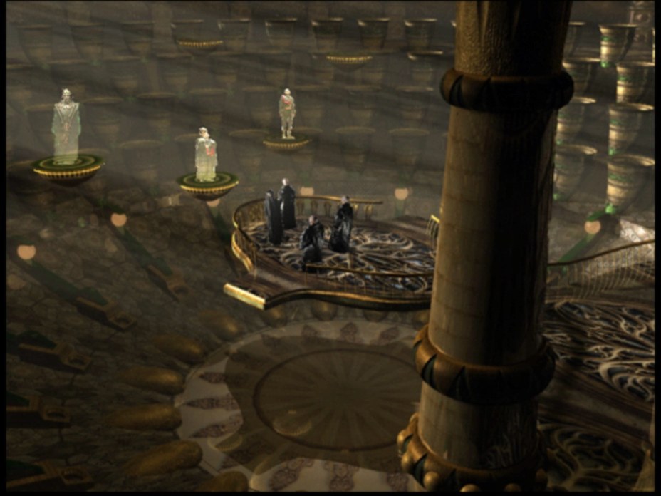 If Dune 2000 shared visual similarities with the David Lynch adaptation, Emperor: Battle for Dune almost gives the impression that Westwood nicked its sets and costumes. The Harkonnen and Atreides troopers look exactly like they did in the film adaptation, down to the gas masks and khaki uniforms, respectively. Baron Rakan Harkonnen and his two sons resemble Vladimir Harkonnen and his nephew both in looks and personality. The same is true for the bald Gene Gesserit sisters and Spacing Guild members, the Sardaukar troopers, the Emperor – once more played by Adrian Sparks – and other sets and actors. The acting is somewhat exaggerated and campy. This is on par with the performance of Westwood actors in previous Command & Conquer games and probably for the better – an attempt at a more sober performance probably would have given the impression of the game taking itself too serious. The cutscenes are enjoyable and have a good sense of drama, and the comparably low resolution of the videos covers up some of the CGI flaws.