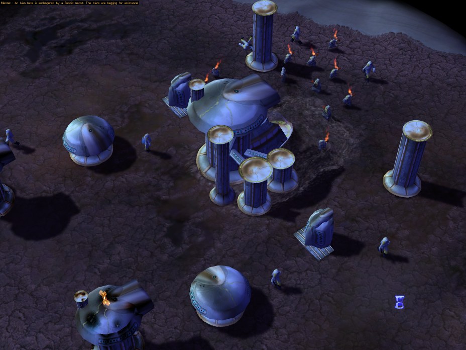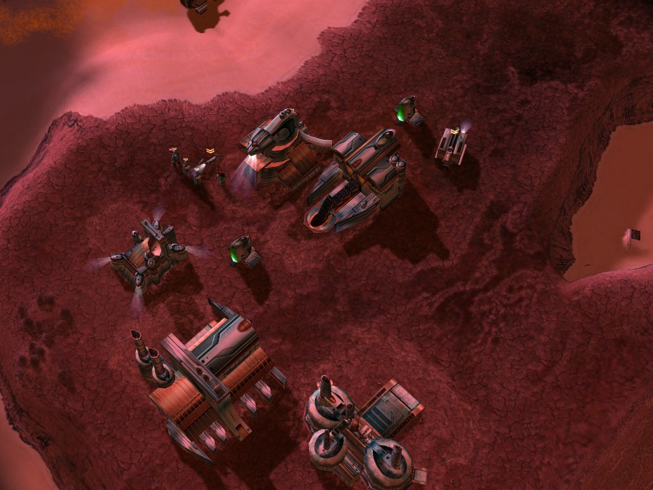 As it was the case with the previous Dune games, all three houses share most of their buildings, and only a few changes have been made to the building roaster. In tune with changes the Command & Conquer series made, the light and heavy factory were merged. Spice refineries can now be upgraded, encouraging the player to build less refineries overall. All three houses now have different and thematically appropriate base defenses. The Atreides use a gun and rocket turret, the Harkonnen a flame tower and machine gun turret, and the Ordos defend themselves with war gas. New in Emperor: Battle for Dune are five smaller factions. Back are the Fremen, who provide camouflage infantry. The Sardaukar, ready the strongest house on Dune, offer the player with heavy infantry. The technologically sophisticated Ixians have a projector that creates illusionary units and a suicide scout. Their bitter rivals, the Tleilaxu bioengineers, have the zombie-like Contaminator and the Leech, two units which turn infantry and vehicles into more copies of themselves. Lastly, there is the Spacing Guild, which comes with a super long-range cannon, sandworm-like Makers that shoot lightning, and teleporting tanks. During the campaign, the player can ally with these factions via certain events, with the exception of the Spacing Guild. This, combined with the semi-linear campaign, adds a nice bit of variety to repeated playthroughs.