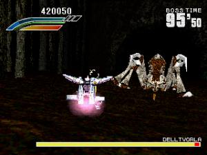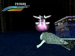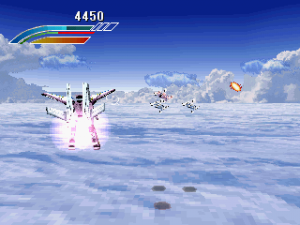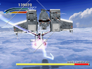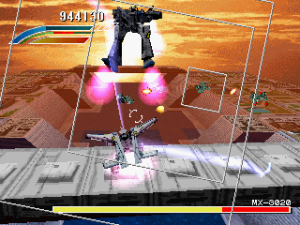 Like many 3D flying games, it’s hard to judge the distance between your character and the enemy’s attacks, and most bosses don’t really telegraph their moves, making it difficult to dodge them until you’ve encountered them a few times and know the safe zones. Your mecha can take a handful of shots before getting destroyed, and while you only have a single life, there are mid-level checkpoints that let you resume progress, and you can continue as often as you want. This makes the action fairly breezy, but with six stages, the final one consisting only of a boss battle, the game can be finished pretty quickly. Without any higher difficulty modes, the only replay value relies on increasing your score and acing every stage. Between levels are no-frills mission briefings, though it includes some well-known voice actors, including Shigeru Nakahara (Shou from Aura Battler Dunbine, Android 17 from Dragon Ball Z), who coincidentally was also in Panzer Dragon Zwei.