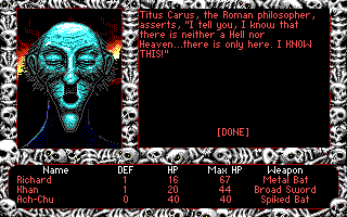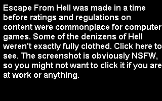 The old days of computer RPGs were mostly dominated by the fantasy genre, with titles such as Ultima, and Might and Magic being among the most popular. Every so often, a game would come out that tries to actively defy such RPG conventions. Escape From Hell puts its own spin on RPGs with a very outlandish concept, and tries to stand out with an irreverent sense of humor by setting the story in Hell. As to be expected from the era it really shows its age, but if you have tolerance for older RPG mechanics, then you can find yourself on an amusing and sometimes frustrating journey through Hell.