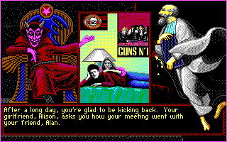 This game also has some cool copy protection. You have to look up various character bios, including their name, when they died, what their sin was, and their favorite way to torment people.