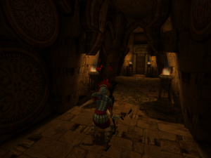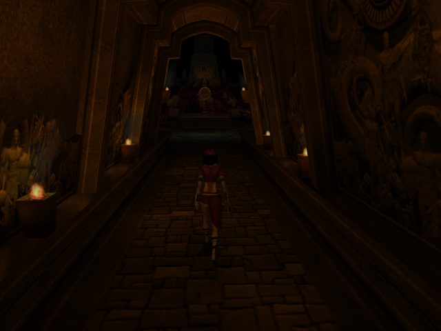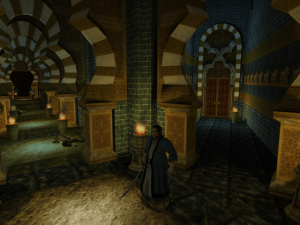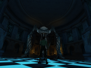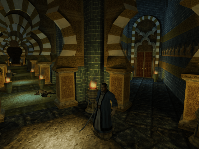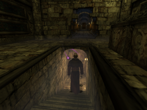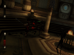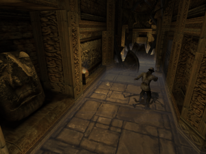 The game’s visuals really shine. The four locales – the moody Roivas Mansion in Rhode Island, USA, a trap-filled temple in Cambodia, a mysterious underground city in Iran, and a church in France – recur as the game progresses. While returning to the same handful of places may sound repetitious, the designers & artists put a lot of effort into making each return feel fresh. The mansion reveals new rooms & secret passages, the temple becomes overrun with vegetation, the underground city gets caught up in renovations & war, and the humble church blossoms into a full blown cathedral. Much of the texture work, modeling, and lighting holds up today. It all begs for a remastered version. What doesn’t hold up quite as well is the way the characters move. There’s lots of heavy looking animations that can give them an uncanny look, especially in cutscenes. They have their charms, but a quick glance at Metal Gear Solid: The Twin Snakes, another Gamecube title that Silicon Knights worked on, shows how much of a difference solid motion capture makes for games of this vintage.