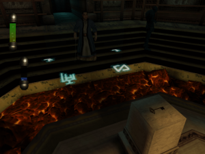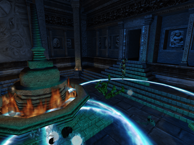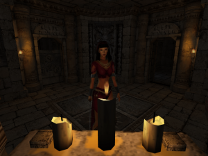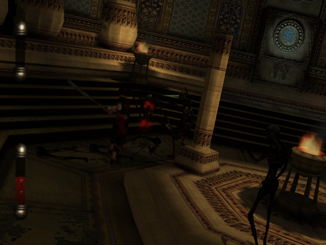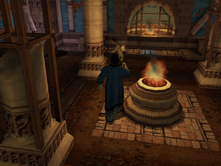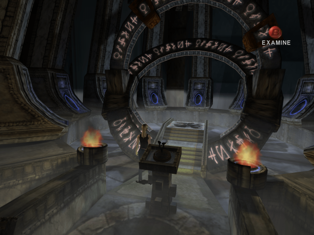 Like its horror game kin, Eternal Darkness has some light puzzling to do. Characters have to submerge dirty necklaces in acid and adjust astronomical equipment to find the way forward. Some puzzles use the magic mechanic to reveal hidden paths, dispel barriers, or enchant items to open doors. Depending on an early choice of Ancient, the game plays out in three different paths, with the true ending accessible by finishing all three on the same save file. Each of the Ancients have their own style of enemies that pop up. Red enemies are able to regenerate limbs, green ones continuously zap the sanity meter, and blue ones will chain self destruct when killed. Other variations include small changes in FMVs and puzzles. For those who want to see the whole story, it can be a bit repetitive but doing so does provide the chance to see more sanity effects.