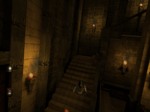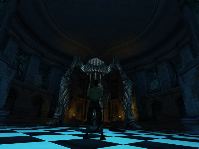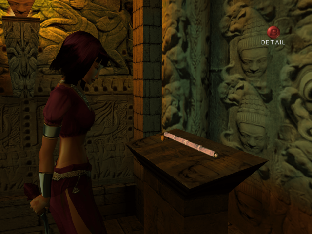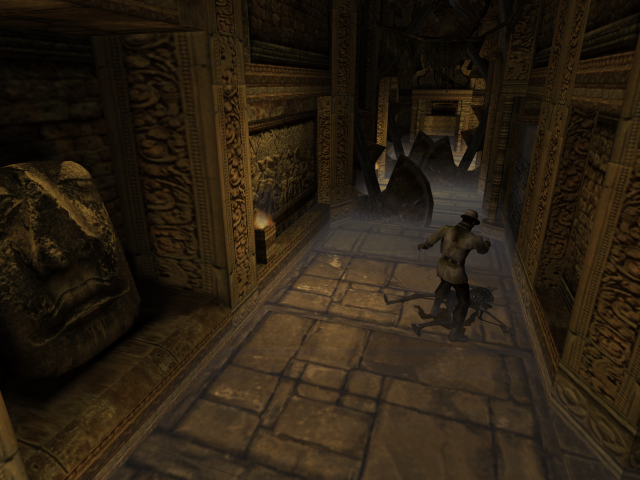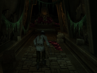 The music and sound effects were composed by Steve Henfin, and the tone he strikes is ethereal and foreboding. Voices chant in a nondescript language over somber ambient backing. Different instruments are employed for the various settings and time periods, like flutes in the Cambodian temple or the sound of a church bell for the French cathedral. Losing sanity makes the music melt into a low discordant tone with piercing screams of terror becoming the choir. Perhaps the most iconic sound effects are the disembodied chanting of runes during a magic spell, with a different voice for each Ancient alignment. The game featured Dolby Pro Logic II support. Granted, it is not true surround sound, but for many, it was their first brush with such tech in a video game. The sanity effects leave a greater impression when the wails & knocks are coming from all around.