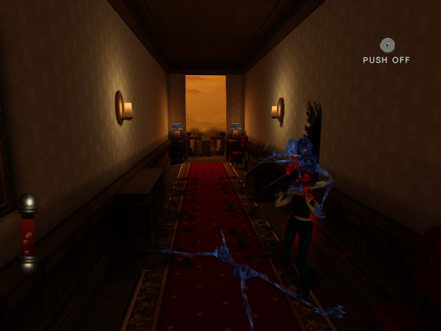 The sanity effects are the star of the show in Eternal Darkness. The designers at Silicon Knights gamified the idea of playing with the player. The lower the green bar in the upper right of the screen, the more chances for crazy things to happen, with sanity being restored by spells or finishing off enemies. Many effects are temporary surprises, usually long enough for players to figure out they’re being toyed with before resetting back to normal. The character will be standing on the ceiling after entering a new room, the game will abruptly end with an announcement for a sequel, or a blue screen of death error message will rear its head, for example. Others are more passive and persistent, like bugs crawling across the screen, a sudden pounding on the door, or blood dripping down a random wall.