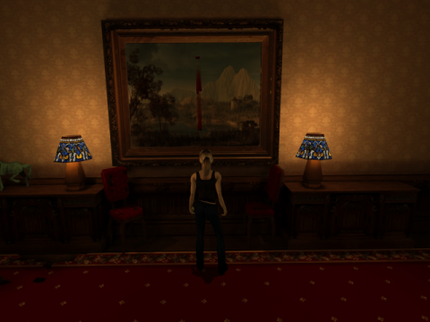 The designers concocted a variety of these effects, and since they descend at any moment, they can be genuinely unnerving. You might pass by a painting to discover its previously bucolic setting has become a horrific fleshscape, or you might be trying to heal in the middle of a fight, only to have your character explode into gory bits before the spell finishes casting. Many of these effects required Silicon Knights to negotiate with Nintendo’s software standards, which is why the game opens with a quote from Edgar Allen Poe’s “The Raven” before the usual procession of logos & trademarks. Some sanity effects are a product of their time, however. When the game turns the volume down or when it switches to the wrong input, it uses neon green bold text, reminiscent of the common UI of CRT TVs. Naturally, the developers couldn’t have anticipated the future, but it does break the illusion, emulated on a modern display. And while the list of effects may be plentiful, it doesn’t take long to intuit when they’ll likely appear, lessening the surprise. In a clever touch, Alex’s own sanity takes a hit each time the game returns to her, signaling the toll the revelations take on her.
