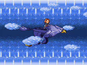 Speaking of glitches, there are tons of them in Eternal Daughter. The most instantly noticeable one is that the game will not enter proper fullscreen mode due to its resolution being too low for modern video cards. It will switch to 640×480 instead, but either most of the screen will be unused and the game will play in a 320×240 space in the center or the desktop will be visible and the game will occupy a corner of the screen. It takes some time getting used to it but the game is playable nevertheless. Still, it’s too bad that it never got patched.