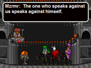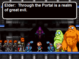 While the game has a fairly large amount of exposition, there is a lot – especially when it comes to personalities of the characters – that is told without words. Despite the low resolution, Eternal Daughter has some really beautiful and fluid animations. It also goes beyond the typical walking, jumping and fighting – outside of the battles the characters talk, laugh, cry and get angry. Those sprites can be very expressive, usually in a sort of cartoonish way: Mia, for example, turns red and literally blows steam when enraged. Some of the cutscenes feel almost like fragments of an animated movie and are a real pleasure to look at.