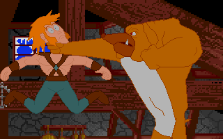 The biggest strength of Infogrames’ game lies within the graphics. While not really spectacular in general, every major event or death plays a gigantic cartoony cutscene in glorious 256-color VGA. All those little animations made by hand really add a unique touch to the whole experience.