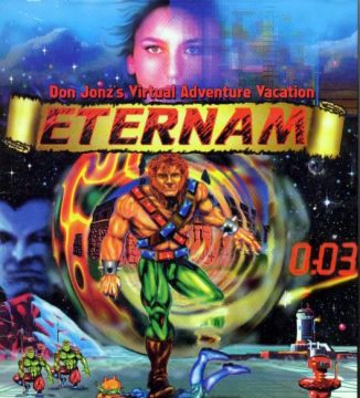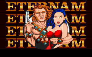Eternam is his baby and a completely insane trip into his subconscious. The plot is a mix between Michael Crichton’s Westworld and any old James Bond story. You play as Don Jonz, a skillful space sheriff from the Orion United Forces. But even galactic heroes need holidays, and that’s why you’ve landed on Eternam, a crazy amusement park-ish planet conceived for unforgettable vacations. Unfortunately as soon as you reach the ground, something is fishy. The androids serving as guides have gone rampant, and you’re forced to trade your high tech gear for a strange barbarian outfit. Indeed, your nemesis Mikhal Nuke has laid a cunning trap to kill you once and for all. You’ll have to explore Eternam in order to neutralize him and save your hide. Don Jonz is helped by the only technician left on Eternam, a lovely gal named Tracy who has digitized herself in the network in order to avoid the planet’s tyrant. She will give you hints, cheer you up or mock you if you die in some stupid way.