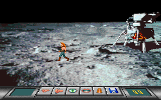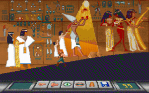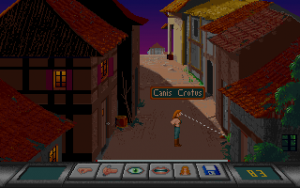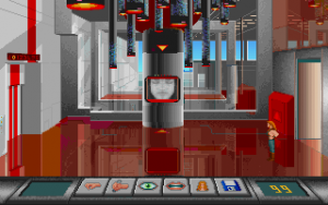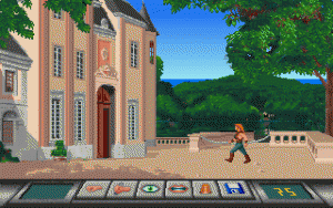 The controls in Eternam are bad. As in most point-and-clicks, you move in a two dimensions space and use four icons (use, talk, pick up, look) to interact with the environment. The very definition of point & click? Except, you can’t click, so the keyboard keys become the only way to play. Infogrames later corrected this problem in the spiritual sequel, Shadow of the Comet, which otherwise used a similar interface.