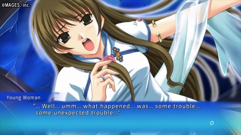 In 2023, Mages/5pb released another version, this time along with the game’s predecessor, Never7, and released in English by Spike-Chunsoft. This version is mostly based on the Xbox 360 remake, but replaces the 3D models with the 2D portraits from the original version. The new English script is mostly fine, though there are some noticeable typos throughout. There’s also a “skip read” function that automatically skips over dialogue already read during previous plays and past routes, though it doesn’t always work.