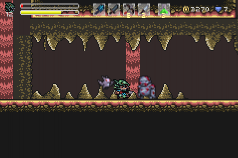 The game’s graphics are successful, easily evocative of many of the most iconic classic fantasy games like Castlevania and Final Fantasy IV. While many of the sprites and weapon designs may seem a bit too familiar, however, the pixelated backgrounds are much more interesting. They recall the dreary and claustrophobic visuals of many NES and Commodore 64 games like Faxanadu or Castle Master but without the constant flicker and uneven movement that often accompanied them. It’s also always a pleasure to see different armor and weapons actually appear on the character ingame. All of this gear can be upgraded (along with the character’s own attributes) at certain points throughout each area. This is a great feature for a game with such high difficulty as new players can focus on improving whatever aspect of the game will make it more accessible, while more experienced ones may opt to limit or skip the upgrading entirely.