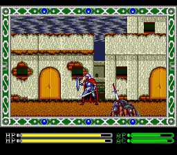 The console ports are excellent, and despite the omission of future levels, and are worth playing if you're new to Exile and want the story in English. There was a partial fan-translation for the MSX2 game, by Django, but this only translated the names of items and keywords. The definitive English version is the Turbo Duo localisation by Working Designs, since it remained uncensored from its Japanese original, whereas the Genesis localisation had the entire burning village removed, as well as the naked dancing girls in the final level. These elements are all still present in the Japanese Mega Drive version though (see screens). The North American Turbografx version also has some more difficult enemies, with many having more HP and some dealing more damage.