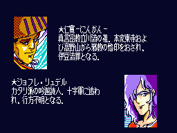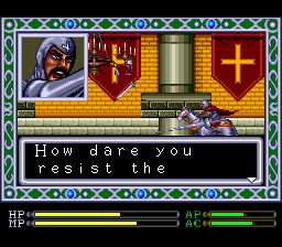 However, the Duo version did have several names changed. I asked Vic if this was at the request of Telenet. "Not from Telenet, but from NEC. There were very strict rules about religious symbols and names as well as drugs, etc. The weird thing was that they didn't seem to care so much about people burning at the stake and naked revelry by followers of Bacchus. So we left in the heretic scene and the naked, drunken sprites that were cut from the Genesis version. But other things like the drug references and religious names had to change. Hence, the Christian Crusaders became the Klispin Crusaders. Given the rules from NEC, it was a pretty sensitive subject, so direct references had to be changed."