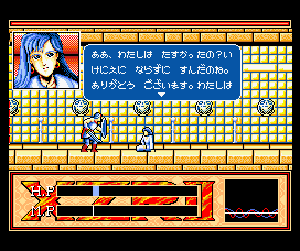 Whichever version you play, Exile is tremendous fun. It's not very difficult, and there's not much complexity to it, but there's just the right balance of action and RPG elements to keep things interesting. Equipment can be bought and sold at stores, but the selection is small and gradually increases, so you never feel like you've missing an important item. Health recharges once you're in an overhead section, and apart from the ant dungeon at the start, there's never really a need to grind. Screen-filling magic also makes short work of the bosses without you having to get in close. It also looks good, with some minor parallax scrolling and wave effects, plus neat little details in places, like blood splatters on walls, facial portraits for minor characters and so on. Plus, if you're playing the Duo version, the anime cinemas are voiced, which is cool.