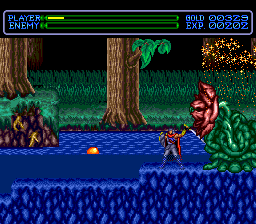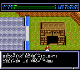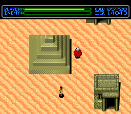 On the one hand it has some beautifully drawn backgrounds, with the opening desert stage having no less than 8 layers of parallax scrolling (this was added by Working Designs and is missing from the Japanese release), but the game's sprites are small, poorly animated and the overhead towns are generic and bland. Towns in the first Exile had some variation to them, with a sheep pen, churches, dung, mining trenches, lakes and bridges, with little things to do like search for hidden diaries and deactivate curses. Here, every town is square-shaped and the buildings all look the same, and there's little else to do besides visit shops or speak to the chief - it feels like the coders programmed the side-scrolling stages and then ran out of time so cobbled the towns together. There's not even a map screen anymore to select destinations: you exit via the side and appear in an action stage, and later on these exits are closed so you can't return. Finally, the randomised effects of drugs make a return, and on occasion they'll do unexpected things - which isn't exactly fun when you're struggling against such a high difficulty.