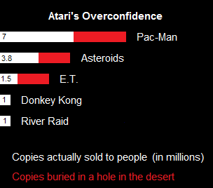 In 1983, Atari's crooked business practices, their reliance on the aging 2600, their inability to keep third parties developers like Quaker Oats from filling store shelves with malarkey, and the declining quality of the flagship AAA titles all came back to bite them. Retailers began returning massive amounts of unsellable Atari merchandise and new orders began to dry up. Before Warner Brothers was able to sell Atari (and its debt) to the Tramiels, they resorted to destroying thousands of new games every month, to alleviate their taxes. This peaked when Atari sent 18 semi trailers out to the desert in Alamogordo, where they dumped millions of overproduced Atari hits like Asteroids, Pac-Man, and E.T. into a giant concrete coffin. This in itself has become become a sort of video game legend, and both gamers and journalists, thirty years later, have attempted to investigate this occurrence.