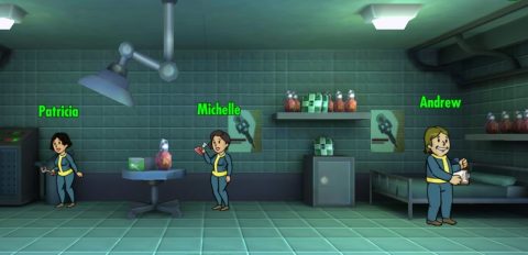 In Fallout Shelter, players need to manage three basic resources: food (needed to keep Dwellers healthy), water (needed to deal with radiation) and energy (the most important resource: rooms don’t work without it). Each of them is produced inside a special room (e.g. water treatment plant) which has to be staffed with your Vault Dwellers. The efficiency of each Dweller’s work depends on his SPECIAL stats (each room has a single stat associated with it) and the rooms can produce more resources after receiving upgrades. Each room can hold two Vault Dwellers but it’s possible to create bigger rooms by creating up to few rooms of the same type on a single level. In addition to resource-producing rooms, player can also build training facilities to increase Dwellers’ SPECIAL stats, storage areas to hold more items (weapons, armor and pets which give beneficial effects when equipped on a Dweller), living quarters which allow Dwellers to have children as well as crafting workshops and medical facilities that produce items.