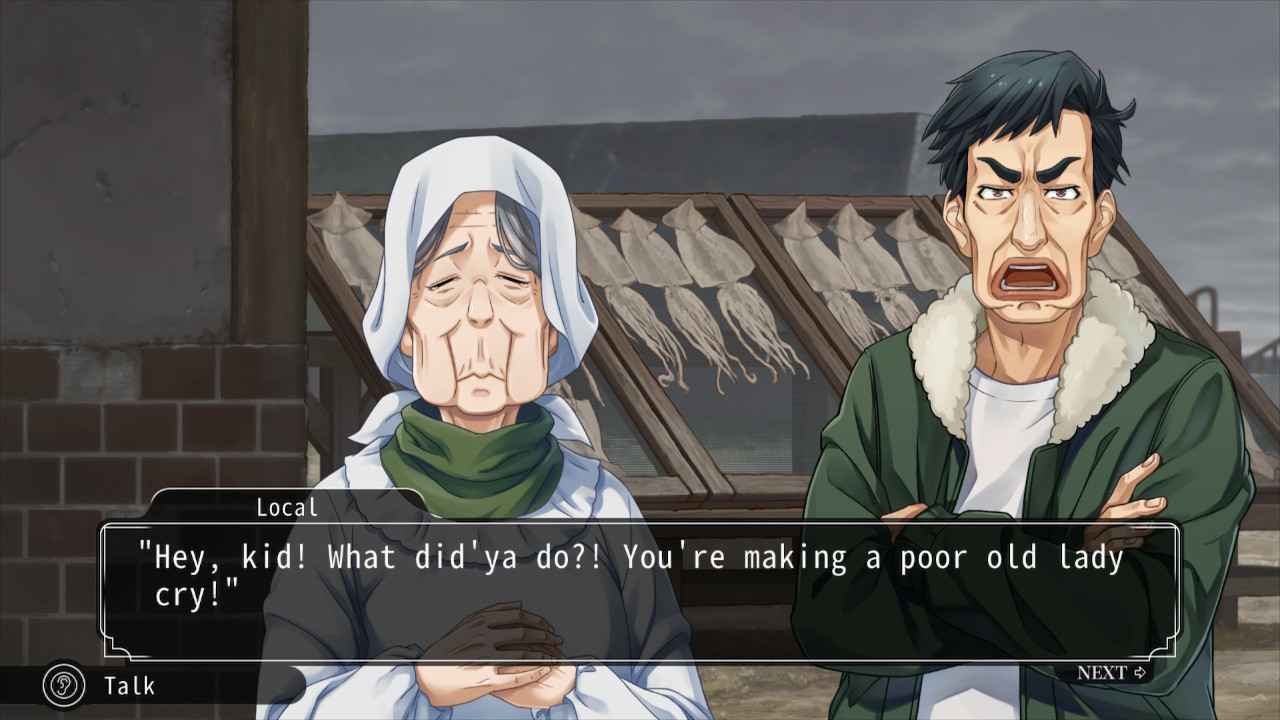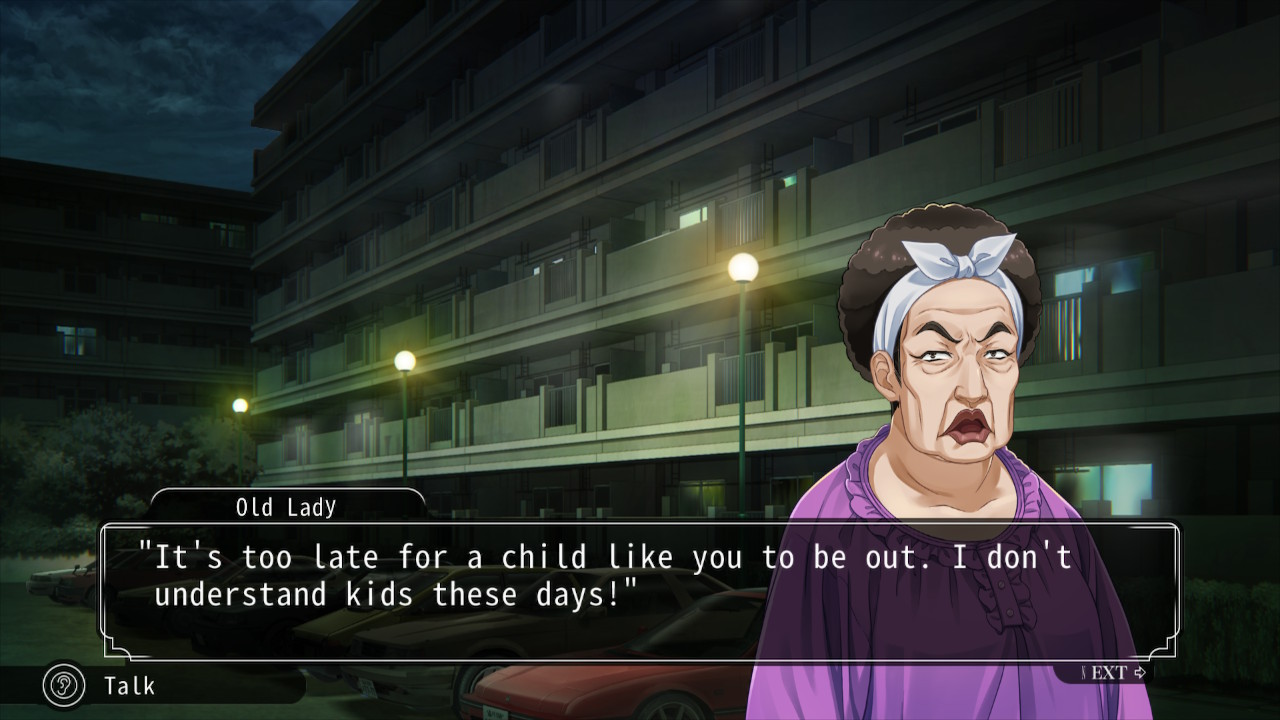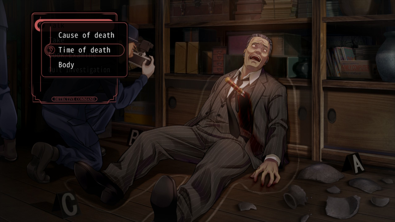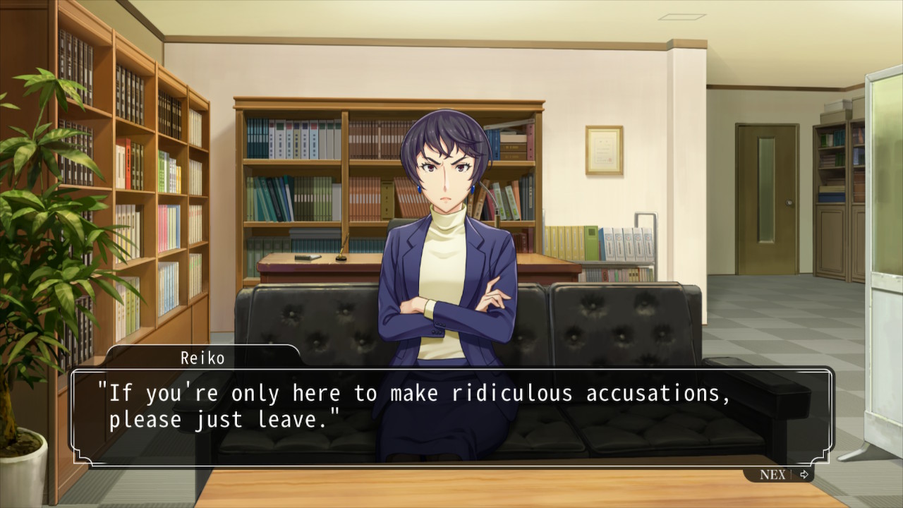 What’s most exciting about these two games coming to the Switch, is that it marks the first time the first game, The Missing Heir, is made available in English. For the first hour or two, the remake does a great job of making the narrative flow better than the in original version. As was pointed out in the article for the FDS version, the game is inherently talky and slow, but the addition of the voice acting and new exterior shots for each location you visit goes a long way to improve the narrative immersion. The atmosphere of the game has also been much improved and is one of the strongest points of the remake; gone are the blue-themed backgrounds of the original and they have been replaced by lush countryside environments, complete with leaves and grass animated to move in the wind, and ambient noises such as the sound of crickets. The game is now divided into 10 chapters that each constitute a day (including a day-night cycle for all the backgrounds), and the mechanic where you need to go back to the office to consult your colleague Ayumi ever so often makes much more sense now, since you will always do that at the end of a day/chapter. The voice acting and animation of Ayumi’s character is excellently directed in the remake, and she does really feel like a part of the team now, which was one of the concerns of the original version where she felt more like a game play device than a fleshed out character. Interestingly, within the Switch remakes, the acting portrays her as a much more confident person in The Missing Heir than in the chronologically earlier The Girl Who Stands Behind, which makes for a nice little character arc.