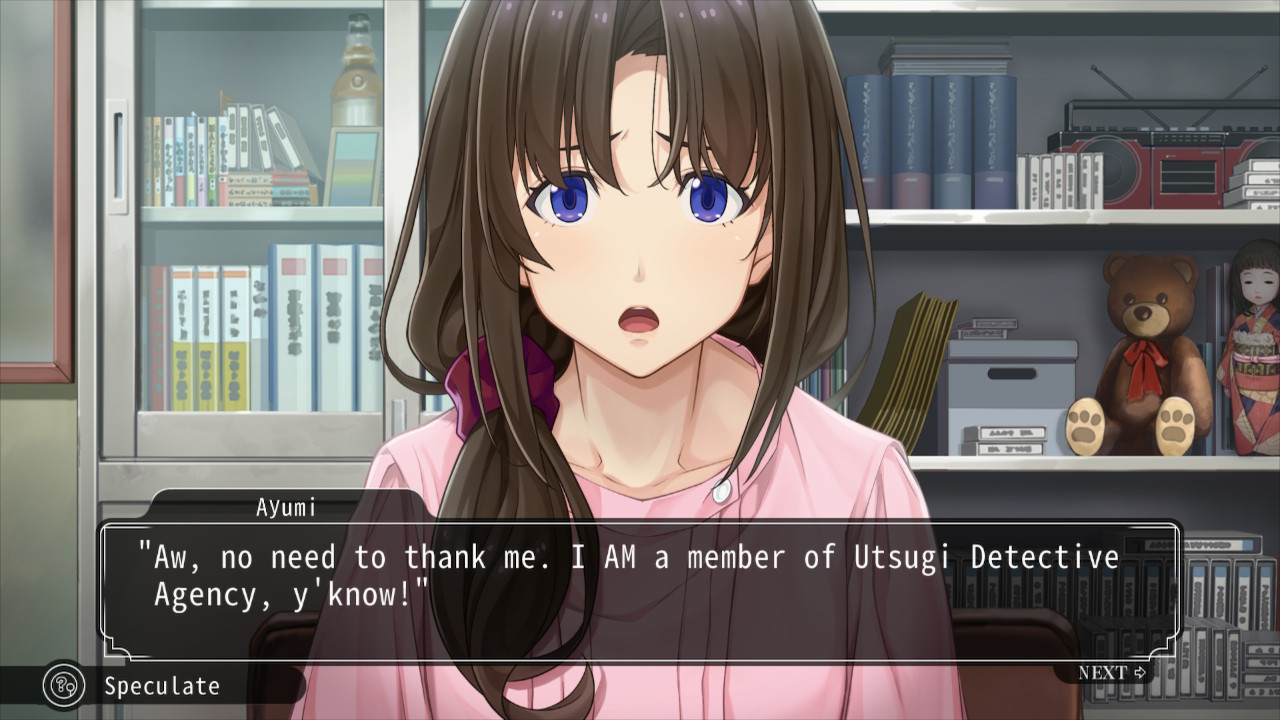 The old-school game design aside, what we do get in these remakes are generally of very high quality in both the audio and the visual department. The music has been re-recorded in symphonic arrangements that truly bring out the best of the original compositions. The soundtrack of the old versions can also be turned on if so desired, which is a nice touch. The English translations are excellent, as you would expect from an official product, and avoids the few small blunders of the fan translation of the second game. The biggest new addition is that the game is fully voiced in Japanese (and subtitled in English). Thanks to many years of games such as the Yakuza series being released in the West without being dubbed, Western players seem to have warmed up to the idea of keeping the Japanese voice-over, and for a game like this that is clearly set in a Japanese environment, having the original voice acting only adds to the immersion. A nice touch is that the voice actor who played Ayumi Tachibana in BS Tantei Club, Yuko Minaguchi, returns to voice the character. The main character is also fully voiced (although there is an option to turn off his audio), but the player is still asked to name the protagonist. By this point, it would have made more sense just to give the character an official name and stop pretending that he is a blank avatar for the player to project themselves onto – which he really never was in the first place since his personal backstory gets involved in the plot in both games. As it is now, any lines of dialogue that refer to his name are just omitted from the voice acting, which feels like a roundabout solution.