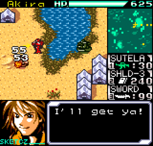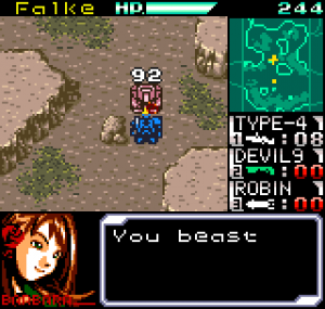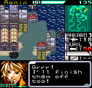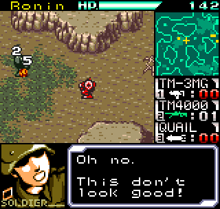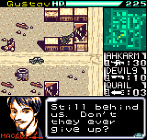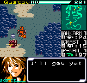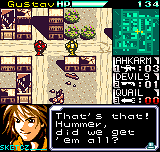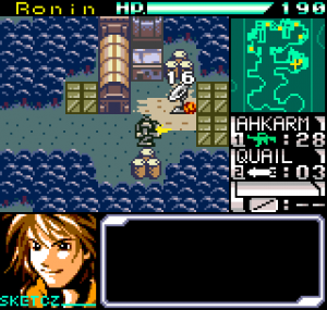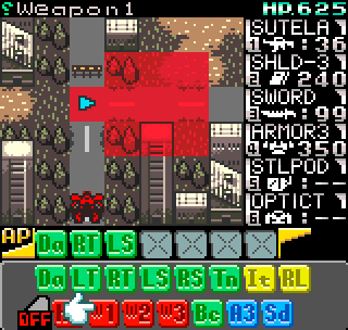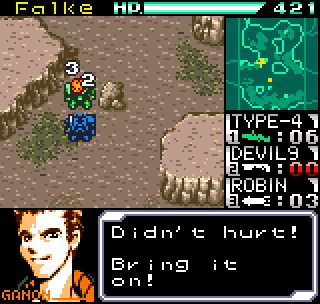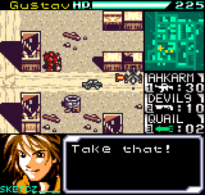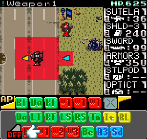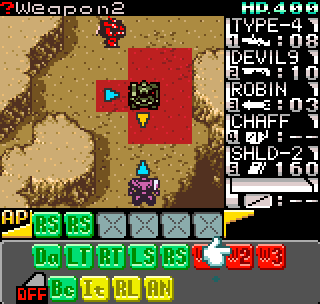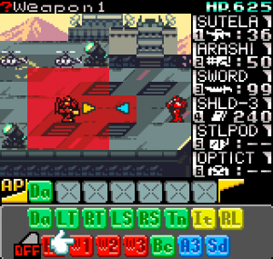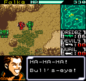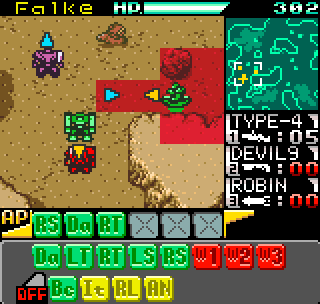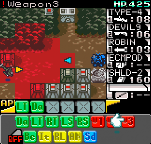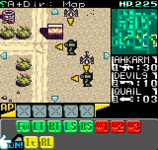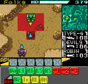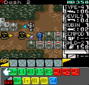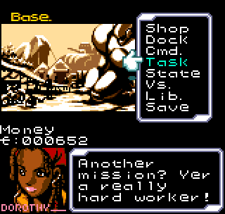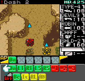 The story meanwhile is also reasonably complex for a handheld title. Set in the year 2099 the world is still recovering from World War III, and many countries are in the grip of anarchic uprisings. As ace pilot of the Faselei mercenary group, you and your team are hired by the rebel army of Middle Eastern country Istar to overthrow the current dictatorship and bring freedom to all. You’ll be up against the regular army and its generals, as well as rival mercenary group The Jackals. There are hidden connections between certain characters to discover and few of them are wholly good or evil. The moral ambiguity keeps things fresh, as it’s clear you’re not always fighting the bad guys. As can be expected during war there will also be casualties, and considering how quickly new characters are introduced to the story some are killed off just as quickly. This keeps the pacing quick and prevents boredom.