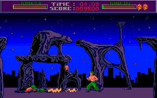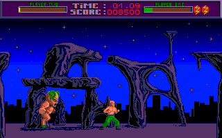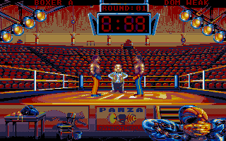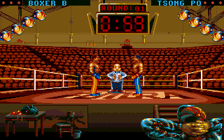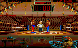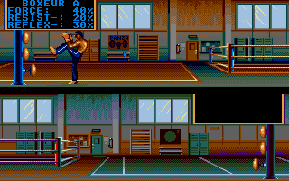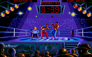Another French production, Panza Kick Boxing takes a more down-to-earth approach than No Exit and presents itself as a serious sports simulation. Great effort was taken to have realistic kick boxing moves in the game. At the time of its release, Panza Kick Boxing had the most expansive moveset in the entire genre - at least in theory. There are 55 different attacks in the game, but in between fights you have to chose 13 of them to map to the typical simple directions or directions plus button press. Being the last notable single-button home computer fighting game to predate Street Fighter II, it is therefore also the best example to show the limitations of this dead-end approach. As the manual tried to justify the method: