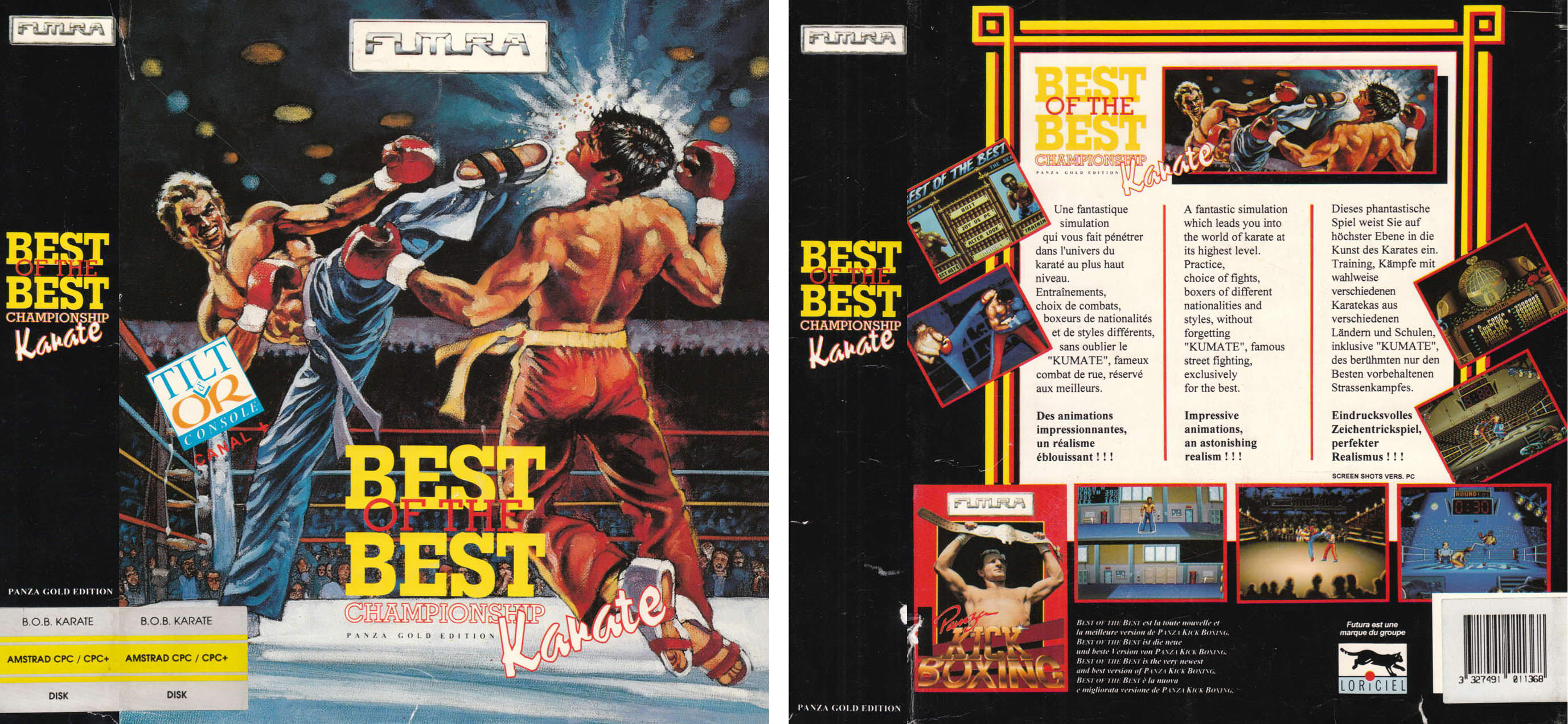Panza Kick Boxing was released under that title for the IBM PC, Atari ST, Amiga and Amstrad CPC, and as André Panza Kick Boxing for the TurboGrafx-16. The 16-bit versions are more or less identical aside from different color palette limitations, but the Amstrad drops the training aspect. The game received an update in 1992, which was strangely renamed Best of the Best: Championship Karate, even though all the moves in the game are still the same, and the computer versions still read "Panza Gold Edition" in small letters below the new title. The biggest differences are a new roster of opponents with more varied menu faces and the omission of the empty stadium variant. At least the Amstrad CPC now got training lessons, too.