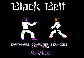 Black Belt was first developed for the Apple II. The Commodore 64 adds some synthesized speech and replaces the dithered graphics for more individual colors, but it actualy looks a bit cheaper for it.