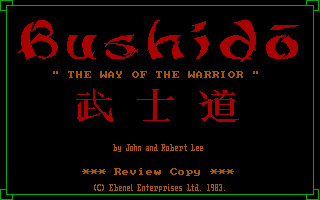 Bushido is another game whose release status is obscure - the version that is floating around the web is marked as a "review copy", and no box scans or advertisements can be found. Yet it seems certain that it was around in the early 1980s - just under exactly what conditions remains uncertain.